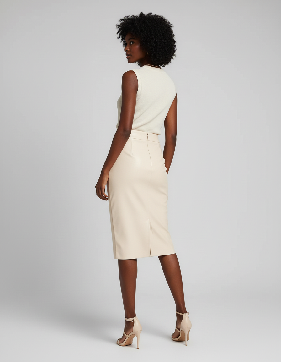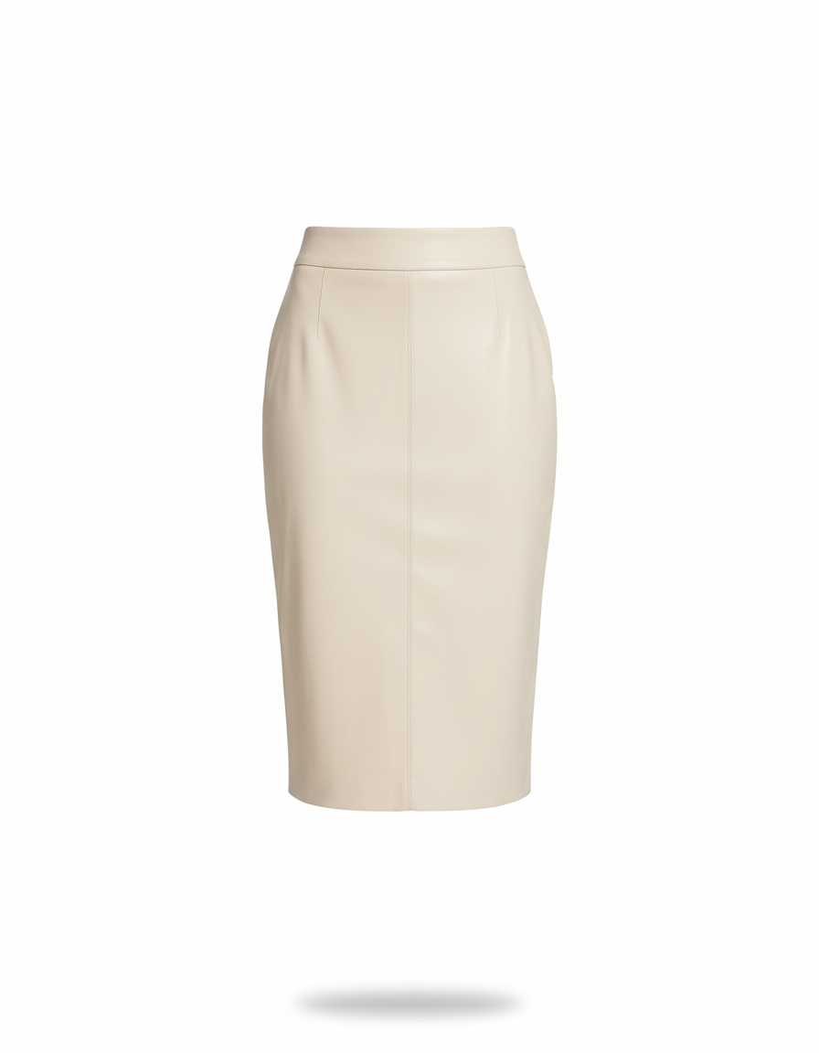 L'Élégance Redéfinie : La Jupe Crayon en Cuir Beige