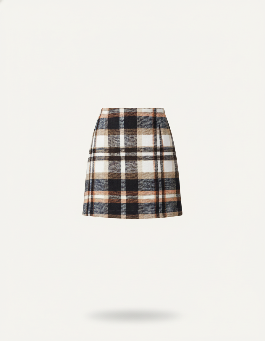 Adoptez l'élégance intemporelle avec notre jupe à carreaux en laine, idéale pour une touche sophistiquée.