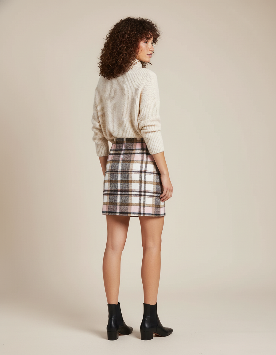 Découvrez notre jupe à carreaux en laine, une pièce chic et confortable pour agrémenter votre garde-robe.