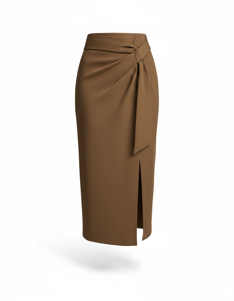 Adoptez un style raffiné avec cette jupe crayon unique et son détail noué.
