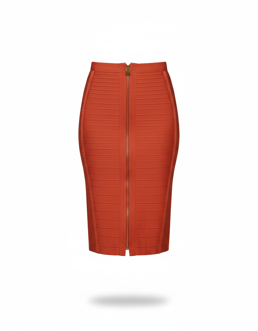 Jupe Crayon Bandage Terracotta Chic à Fermeture Éclair Apparente
