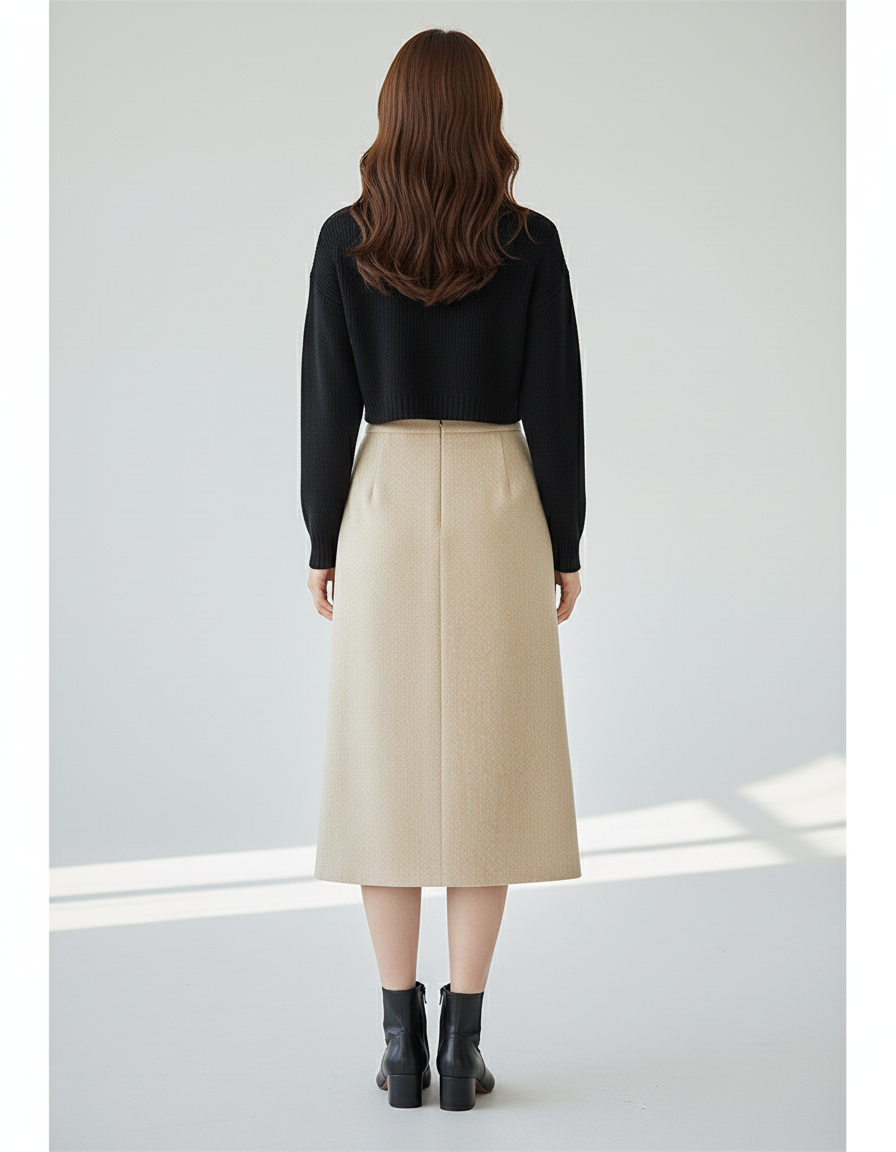 L'Essence de l'Élégance Redéfinie : Votre Jupe Crayon en Laine Beige