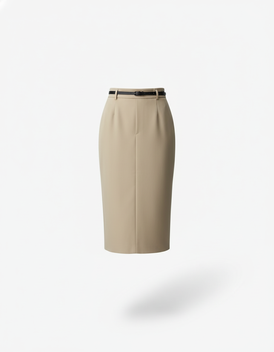 Jupe Crayon Beige Taille Haute Élégante : Votre Silhouette, Réinventée.