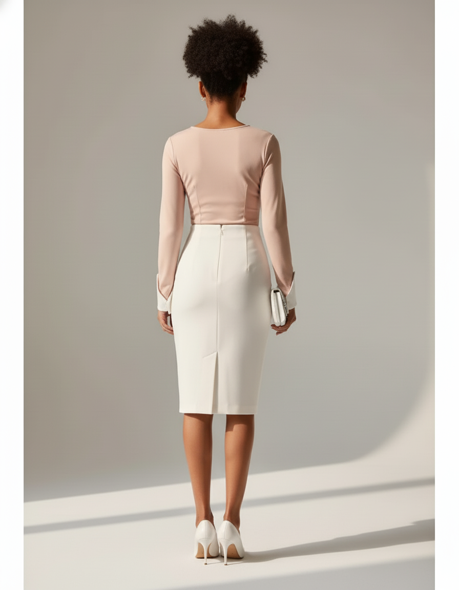 Cette jupe crayon blanche incarne l'élégance moderne et la sophistication.