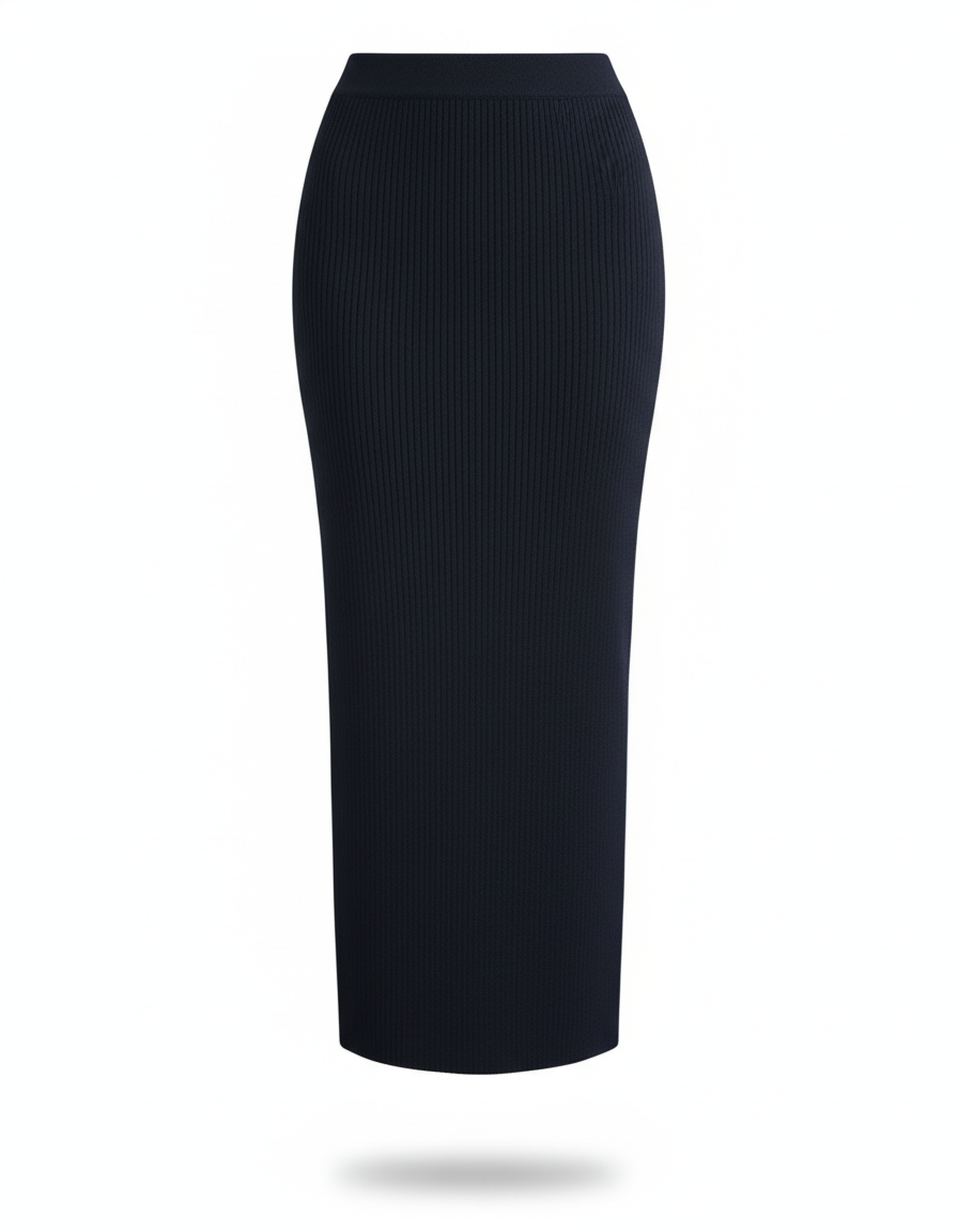 Jupe Crayon Bleu Marine Côtelée Chic : L'Élégance Redéfinie
