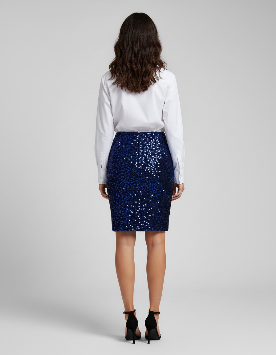 Jupe Crayon Bleu Pailletée Chic : Usage