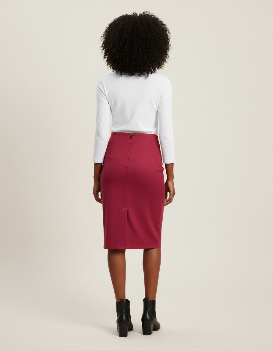 Élégante et polyvalente, notre Jupe Crayon Bordeau est un incontournable pour toute garde-robe.