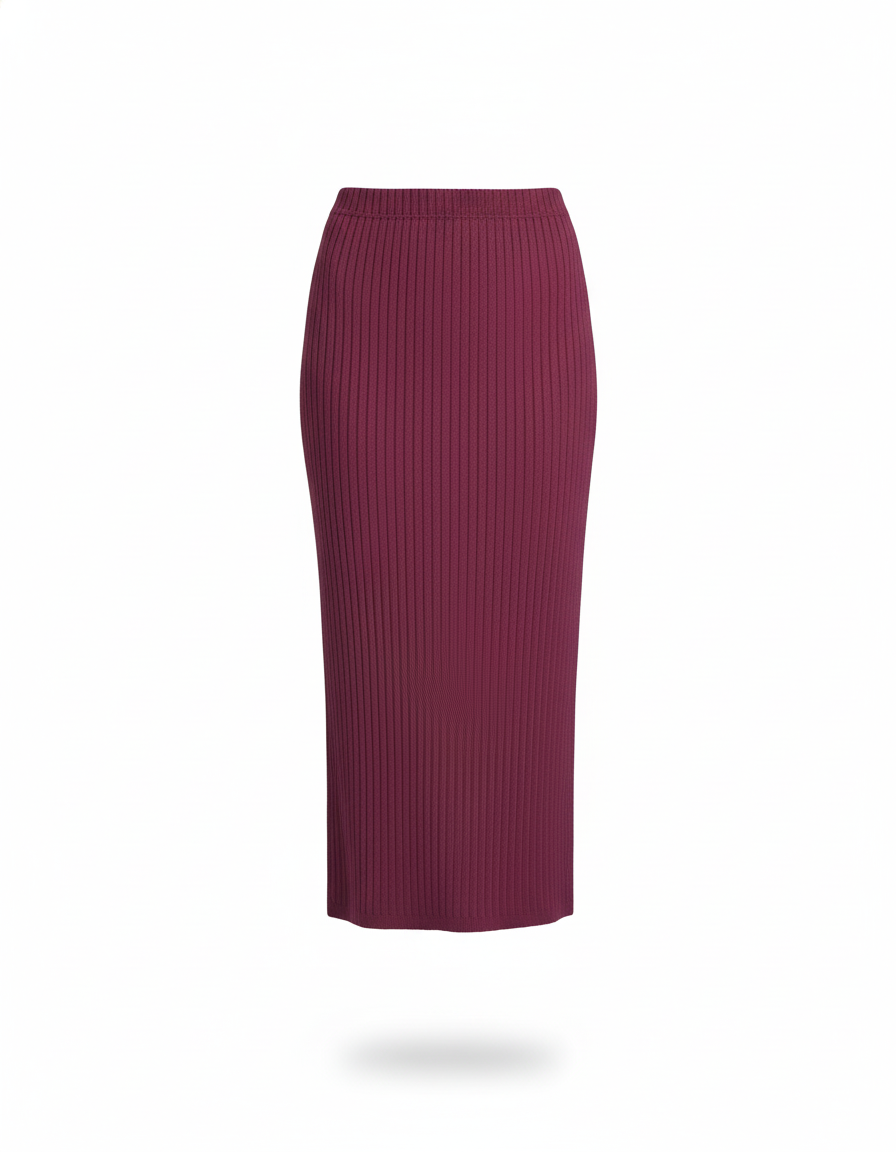 Découvrez l'Élégance Sans Effort avec Notre Jupe Crayon Bordeaux Côtelée