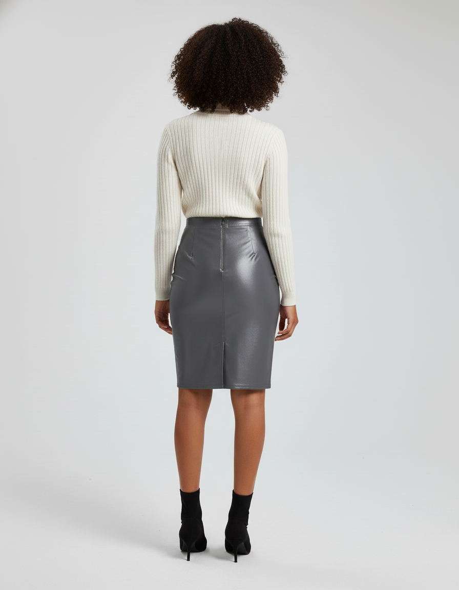 La Jupe Crayon Brillante Grise : L'Élégance Sans Compromis