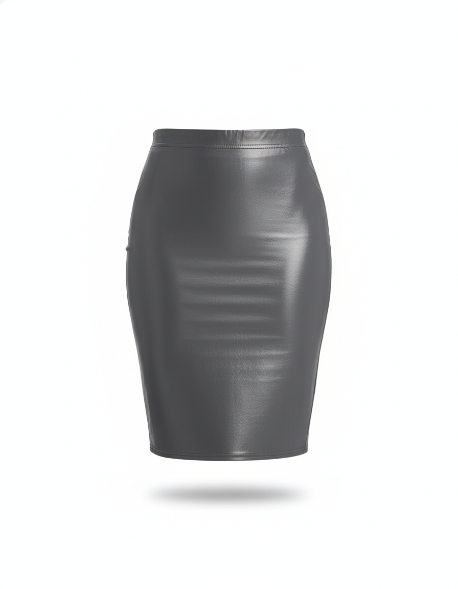 Élevez votre style avec cette jupe crayon brillante grise, parfaite pour une allure sophistiquée et moderne.