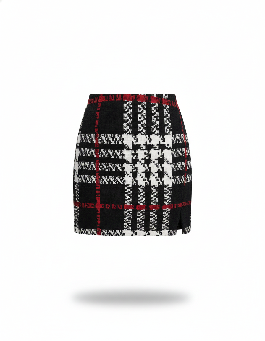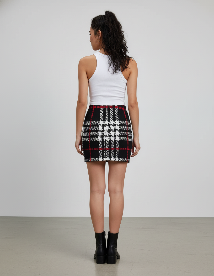 La Jupe Crayon Carreaux Noir Rouge Élégante : Votre Signature de Style Audacieuse
