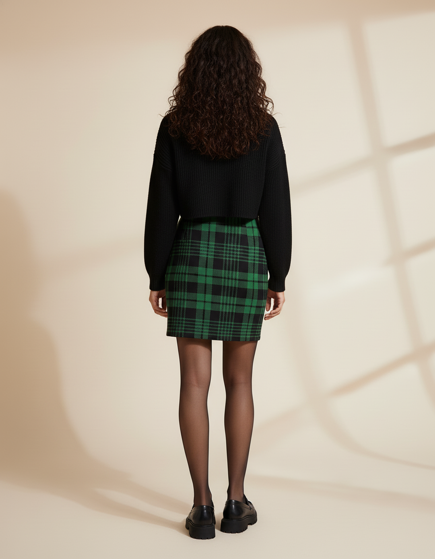 L'Élégance Réinventée : Jupe Crayon Carreaux Verts Chic