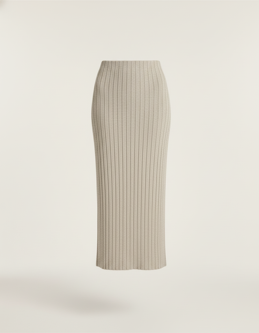 Découvrez notre jupe crayon côtelée beige, une pièce essentielle pour une allure raffinée et confortable.