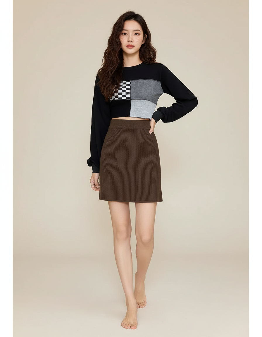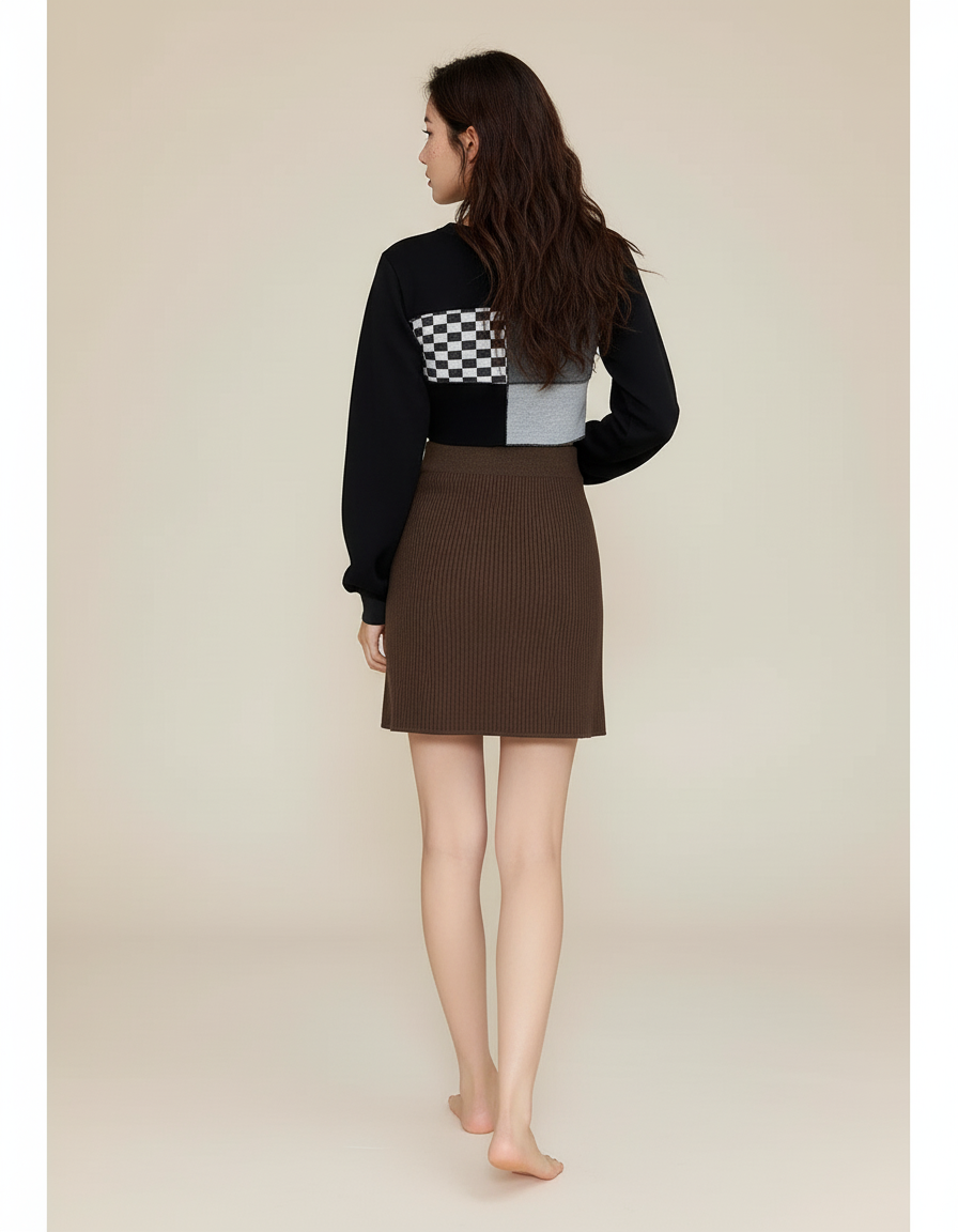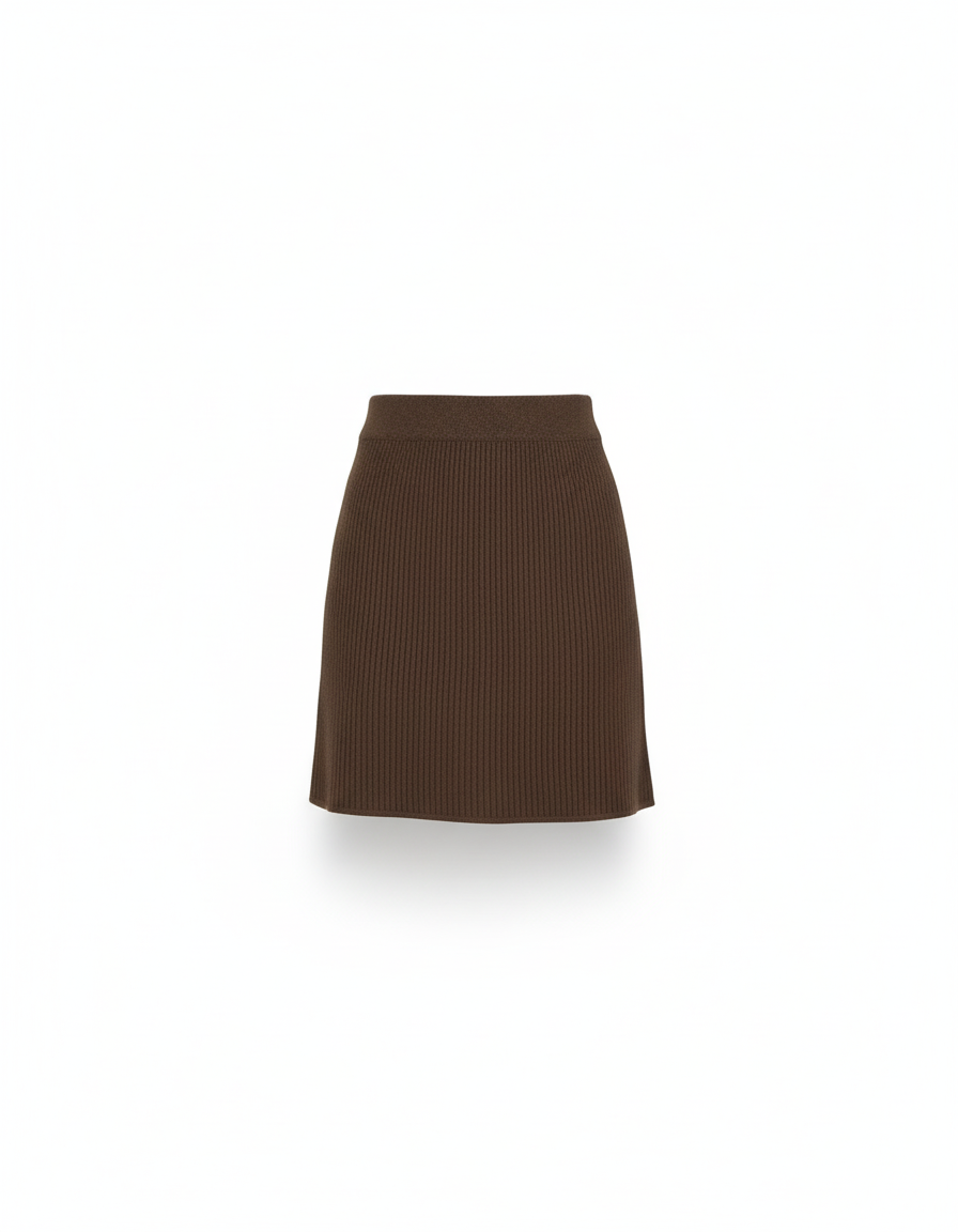 Ce qui la distingue ? Sa maille côtelée de haute qualité, offrant une texture riche et un tombé impeccable qui s'adapte avec souplesse à chacun de vos mouvements. La couleur marron profond est intemporelle et incroyablement polyvalente, se mariant harmonieusement avec toute votre garde-robe. Finies les jupes qui serrent ou se déforment ; notre modèle est une promesse de durabilité et de style, incarnant un luxe concret et accessible qui rehaussera instantanément votre allure.