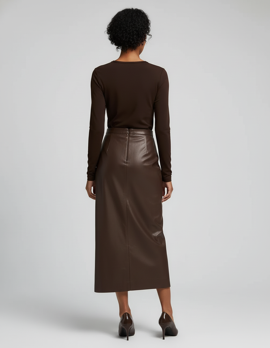 L'Élégance Intemporelle : Votre Jupe Crayon Cuir Marron