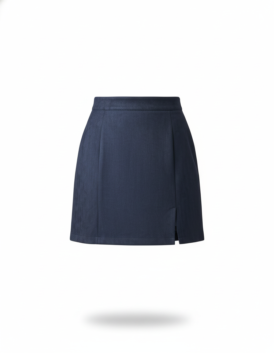 Jupe Crayon Daim Bleu Marine Chic à Fente