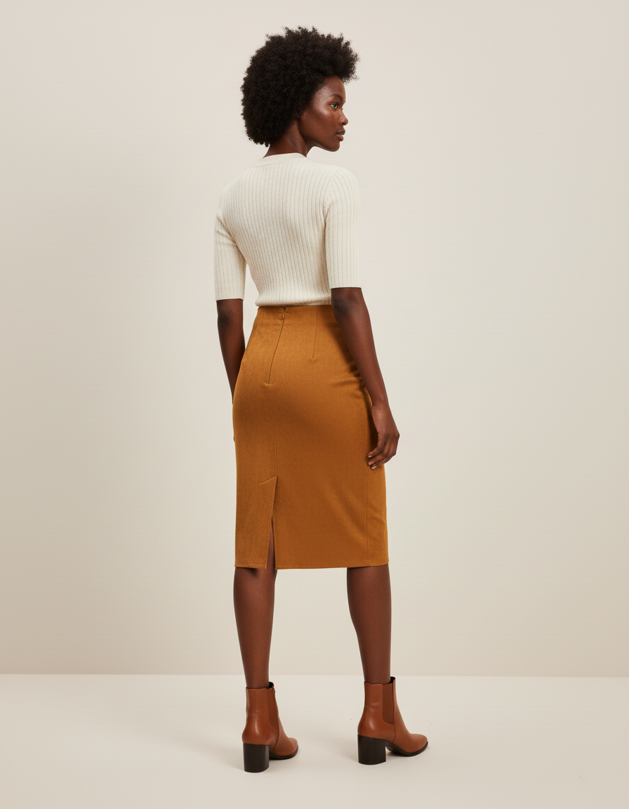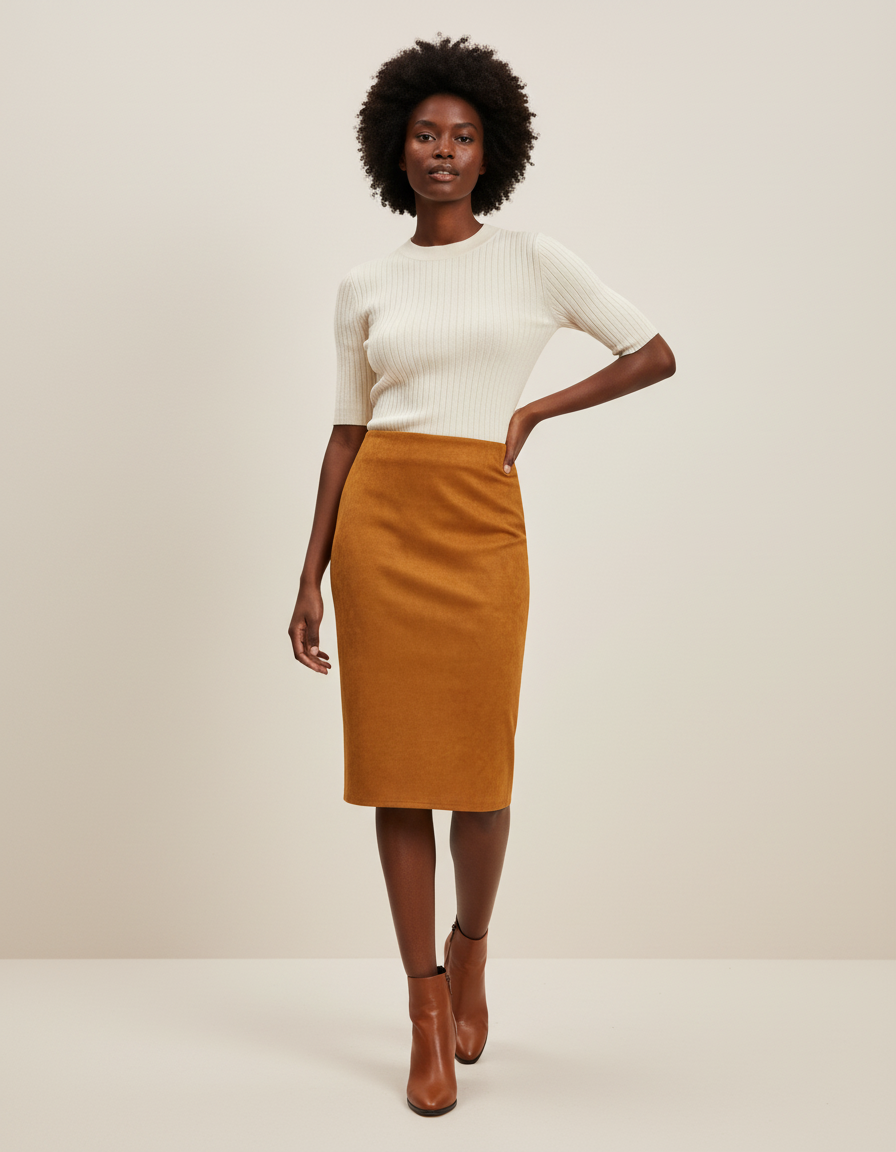 Jupe Crayon Daim Camel : Le Luxe Naturel au Quotidien