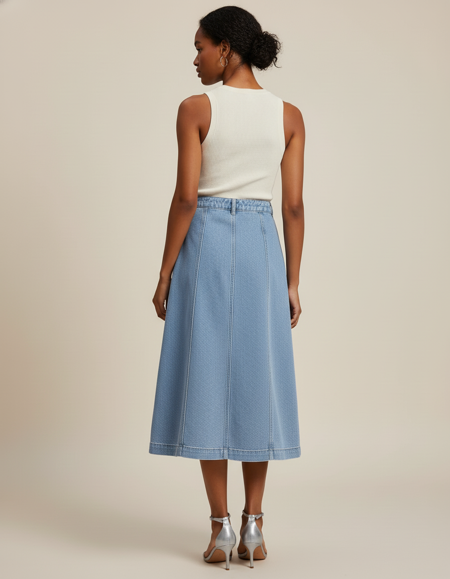 Jupe Crayon Denim Boutonnée Chic : L'Élégance A-Line Réinventée