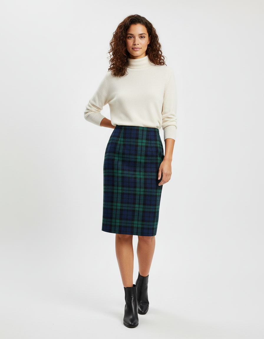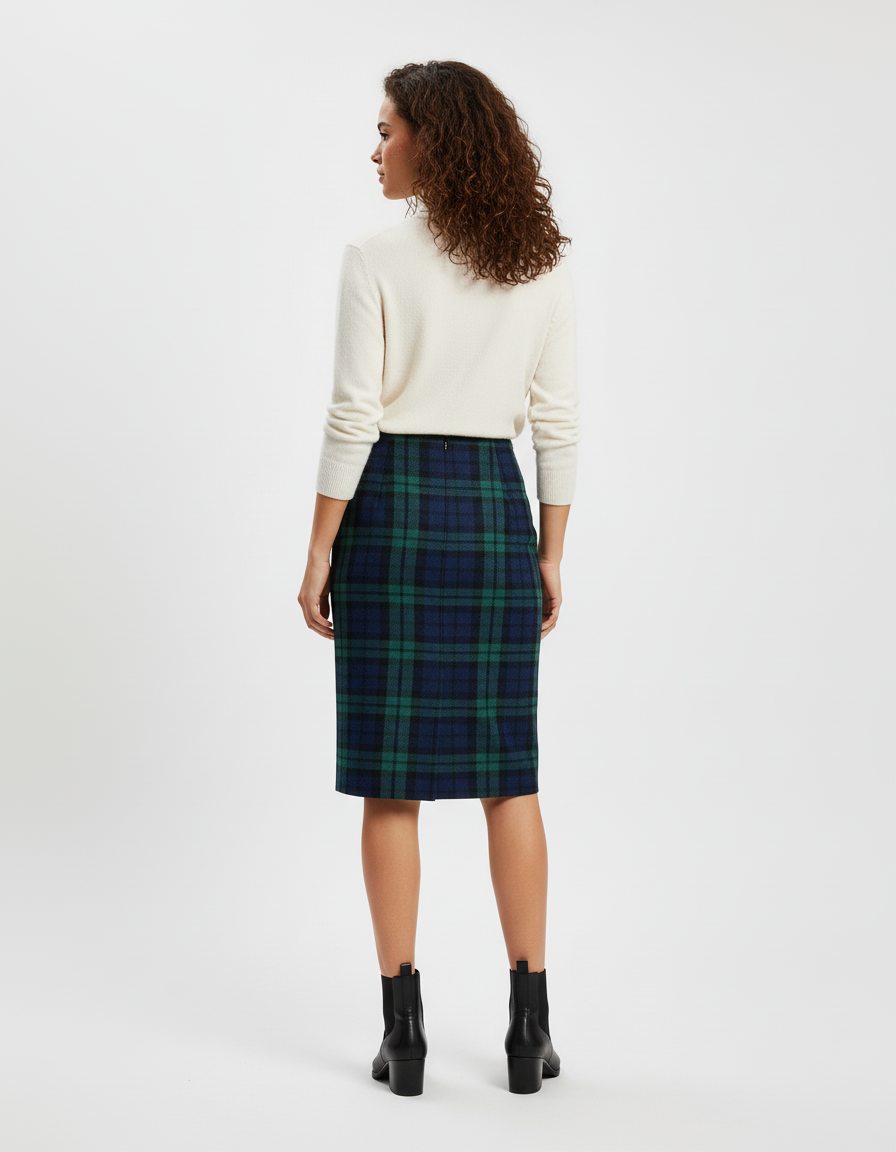 Adoptez un look chic et intemporel avec notre jupe crayon écossaise en laine, parfaite pour toutes les occasions.