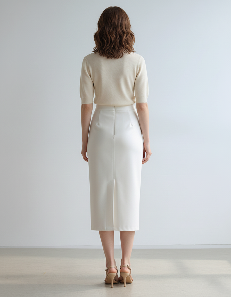 Jupe Crayon Écru Similicuir Chic : Votre Signature Élégante