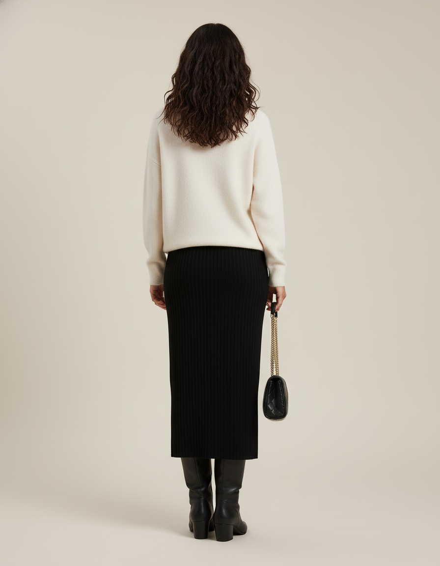 Ce qui distingue véritablement notre Jupe Crayon Extensible, c'est son mariage parfait entre une esthétique intemporelle et une innovation textile. Oubliez les jupes rigides et inconfortables ; notre version en maille nervurée redéfinit le chic avec sa texture subtile et sa coupe flatteuse. Chaque détail, de sa fente discrète à son maintien optimal, a été pensé pour sublimer votre allure sans effort. C'est l'investissement intelligent pour une garde-robe raffinée, une jupe qui non seulement complète vos tenues, mais les élève, vous offrant la confiance de rayonner en toute circonstance. Adoptez cette icône du style et transformez votre quotidien avec une touche de luxe discret.