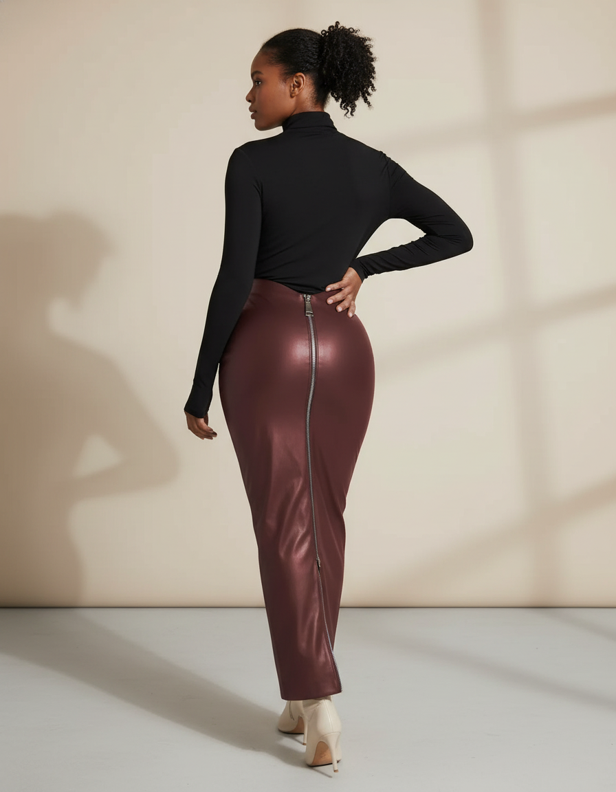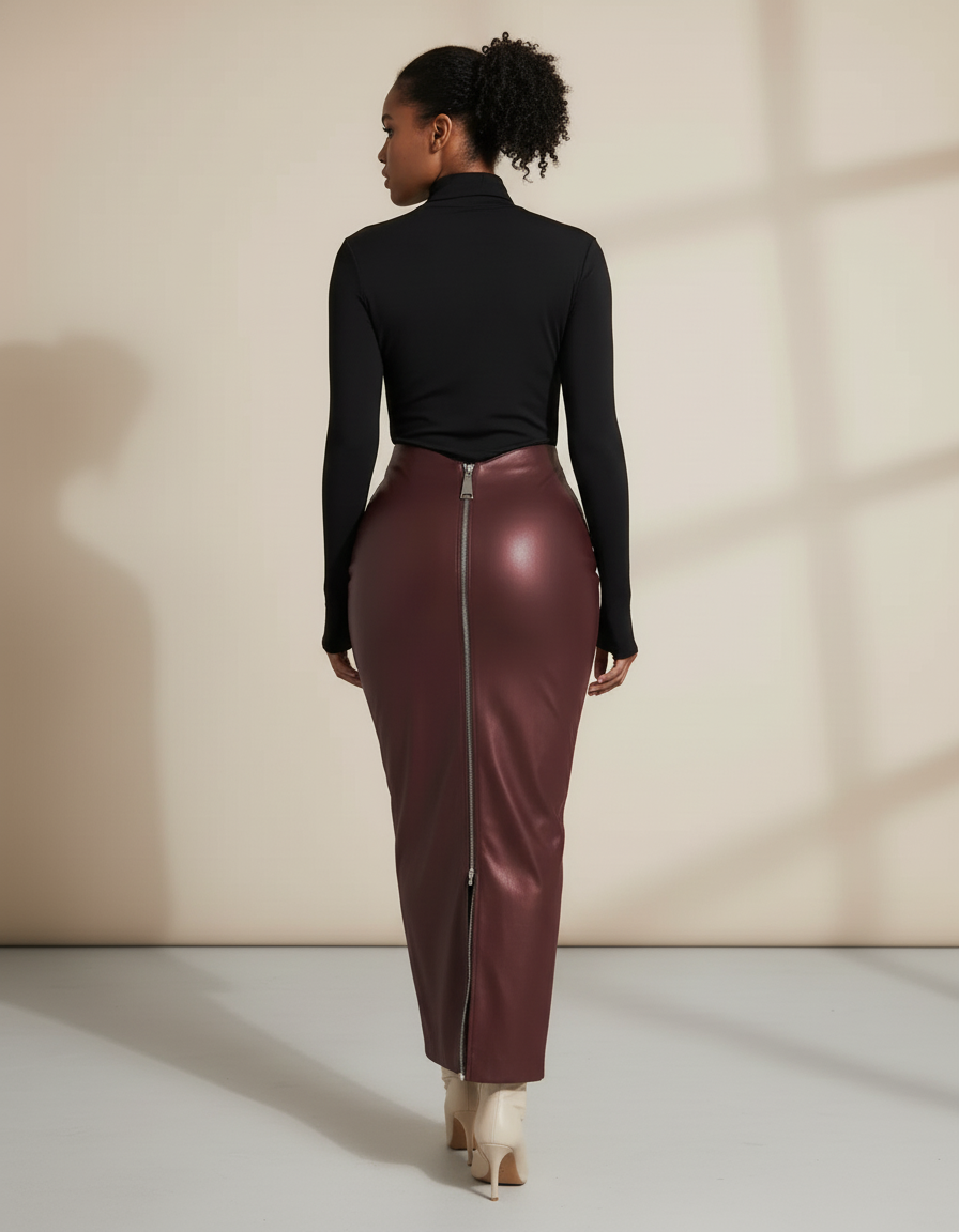 Jupe Crayon Cuir Bordeaux : L'Audace d'une Élégance Moderne