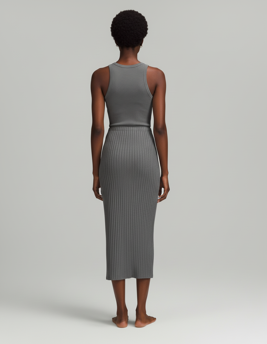 Conçue pour la femme exigeante qui navigue avec aisance entre ses engagements professionnels et ses soirées mondaines, notre Jupe Crayon Gris Côtelée Élégante est la pièce maîtresse d'une garde-robe intelligente. Elle incarne l'équilibre parfait entre un confort absolu et une allure irréprochable. Sa maille côtelée haut de gamme épouse délicatement les courbes, offrant une silhouette affinée et une liberté de mouvement inégalée. C'est l'investissement idéal pour celles qui recherchent une sophistication sans effort, capable de transformer chaque tenue avec une touche de raffinement discret et une confiance inébranlable.