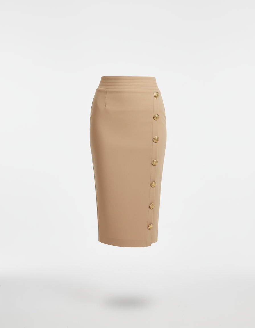 Jupe Crayon Haute Couture à boutons décoratifs
