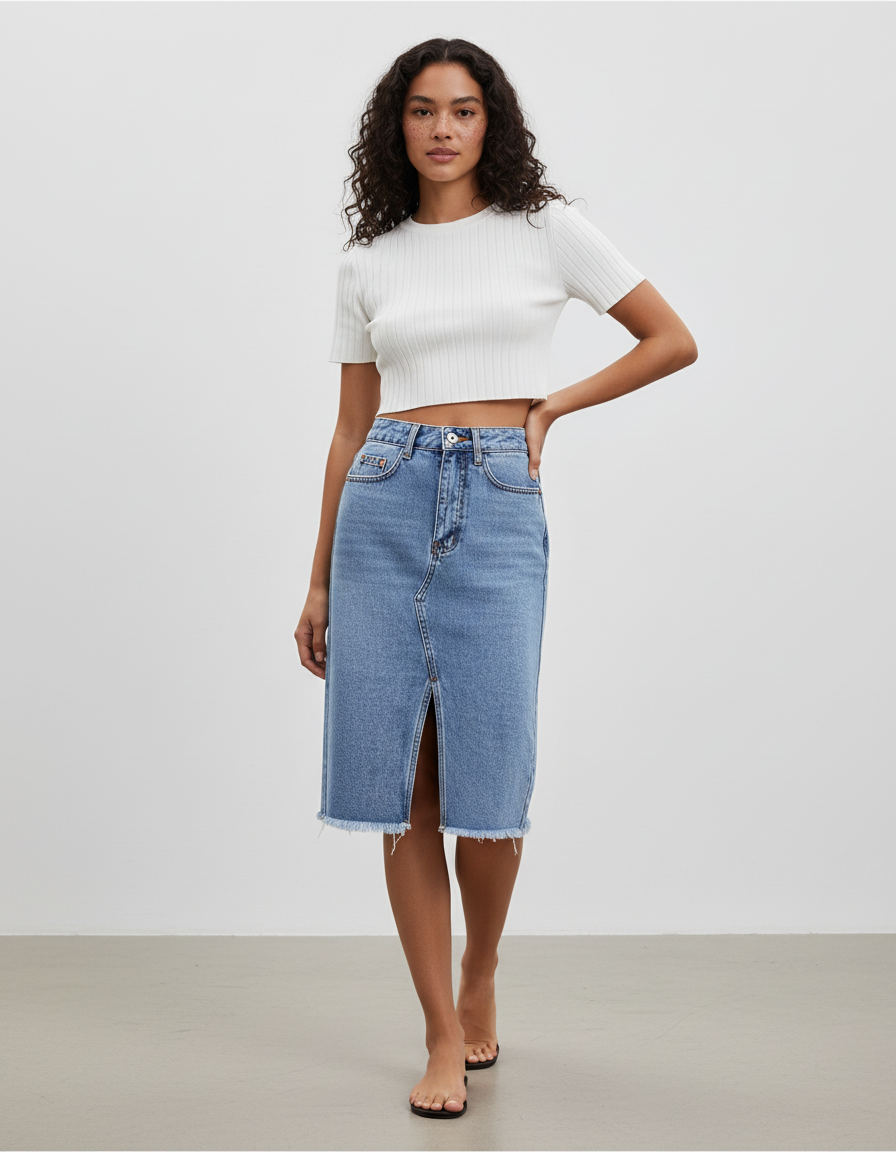 La Jupe Crayon Jean Fendue : L'Élégance Décontractée au Quotidien