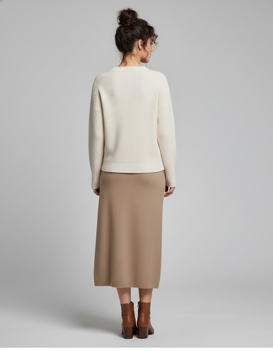 Jupe Crayon Laine Beige Chic : Modèle Tricoté en Laine Mérinos