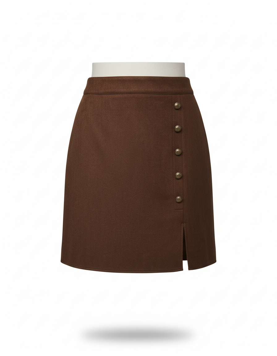 Jupe Crayon Marron Boutons Chic - Caractéristiques
