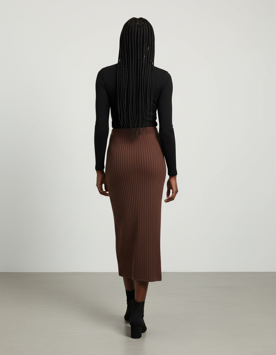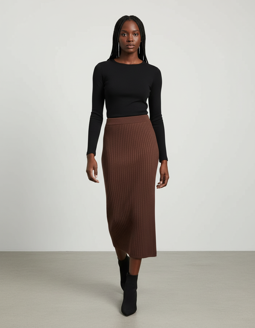 Ce qui distingue notre Jupe Crayon Marron Côtelée Chic, c'est son équilibre parfait entre luxe moderne et fonctionnalité. Contrairement aux jupes classiques, sa maille haut de gamme offre une élasticité douce et un maintien parfait, garantissant un confort optimal tout au long de la journée sans jamais se déformer. La couleur marron profond, chic et polyvalente, s'associe harmonieusement à une multitude de teintes, faisant de cette jupe un investissement durable et un pilier de votre garde-robe capsule. Adoptez une pièce qui célèbre votre individualité avec une touche de raffinement discret et une qualité irréprochable.