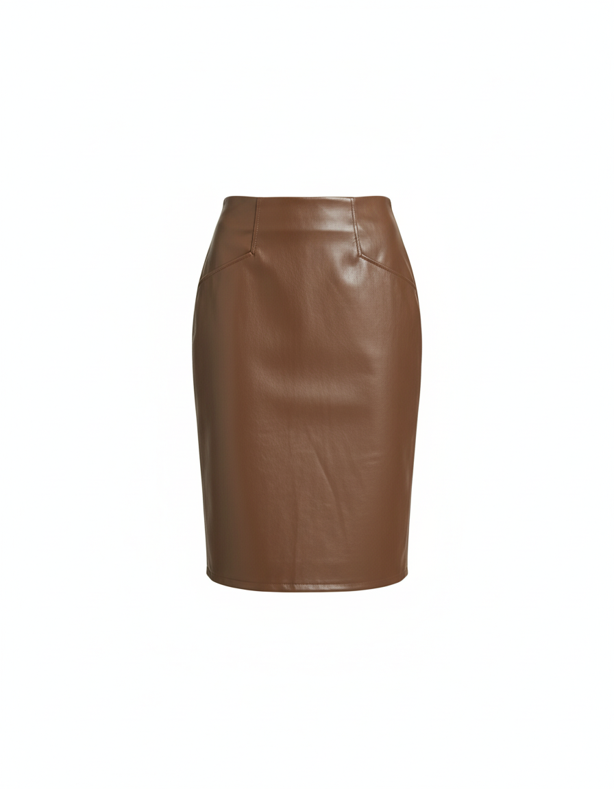 Jupe Crayon Marron Simili Cuir Chic : L'Élégance Redéfinie