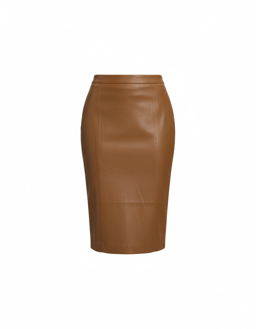 Jupe Crayon Marron Similicuir Chic ajustée