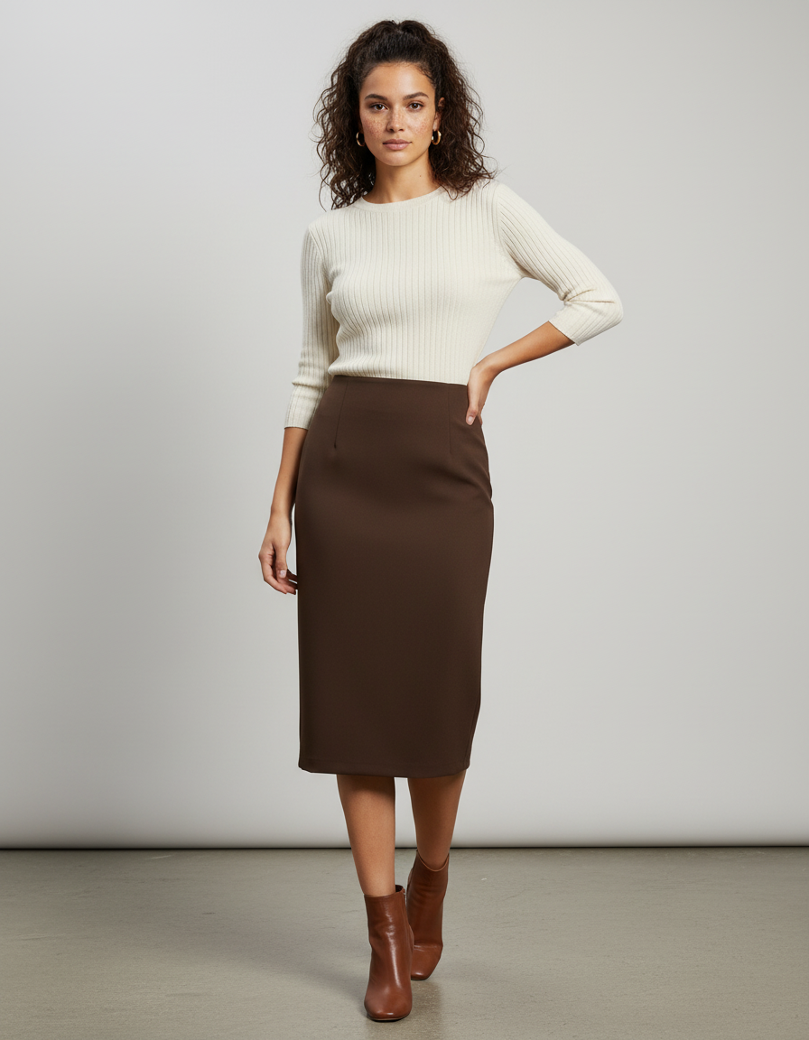 La Jupe Crayon Marron : L'Alliance Parfaite du Style et de l'Aisance