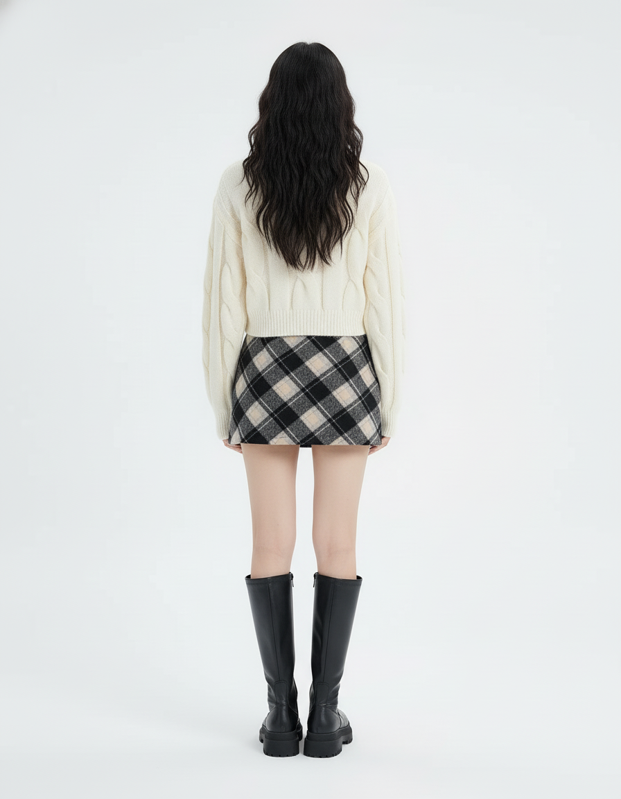 Polyvalente par excellence, cette jupe s'adapte à de multiples occasions. Pour un look quotidien chic et décontracté, associez-la à un pull en maille crème et des bottes hautes en cuir, comme présenté. En soirée, transformez votre tenue avec un chemisier en soie noir et des escarpins pour une élégance affirmée. Pour une touche plus audacieuse, osez un blazer oversize et des baskets tendance. Quelle que soit votre inspiration, la Jupe Crayon Mini Écossaise est la pièce maîtresse qui sublimera votre style avec aisance et sophistication.