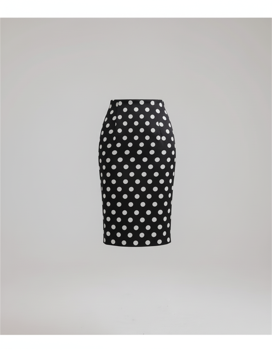 Élégance Audacieuse : La Jupe Crayon Noire À Pois Chic