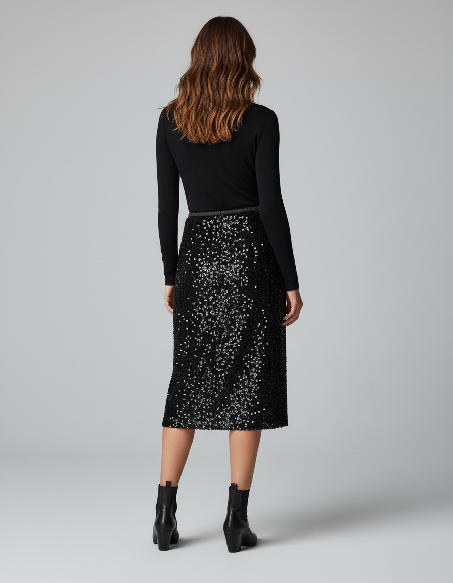 Jupe Crayon Noire À Sequins Chic : Modèle Midi Scintillant