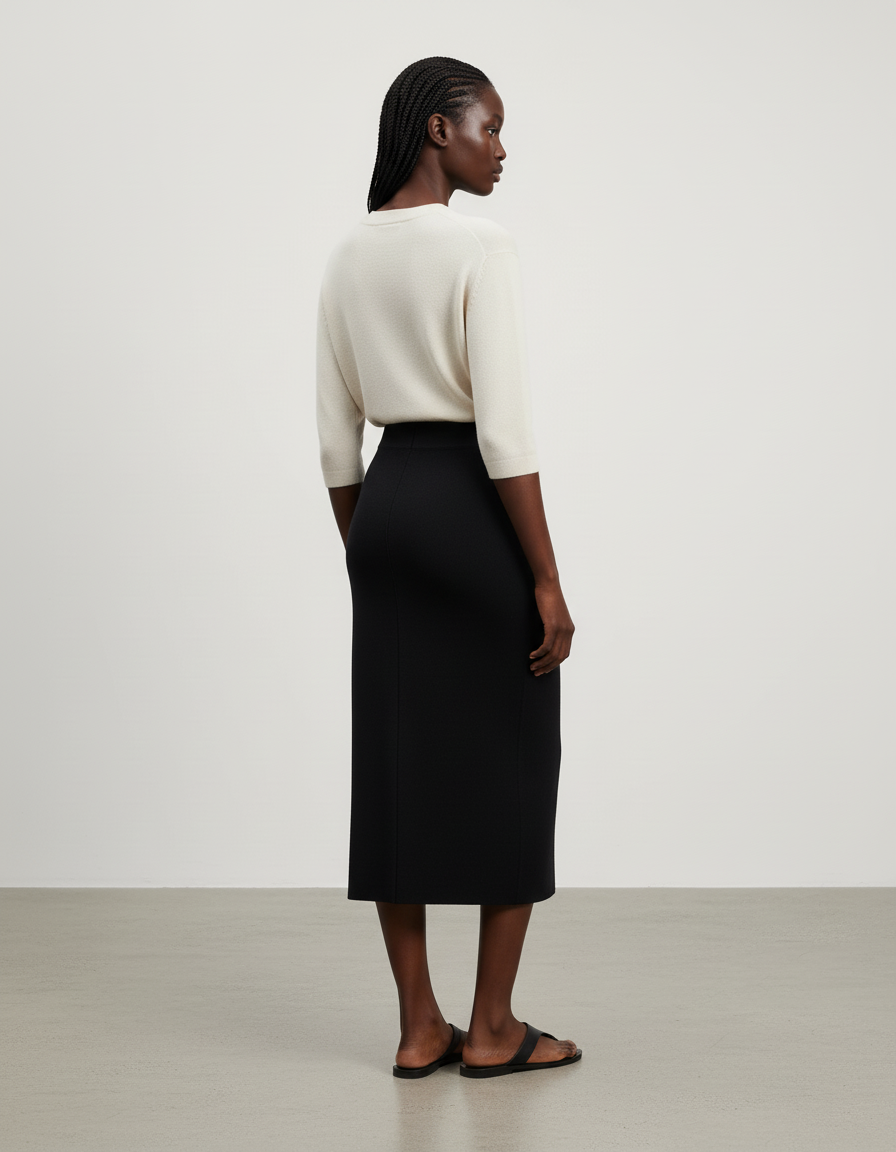 Adoptez une élégance intemporelle avec notre jupe crayon noire, parfaite pour toutes les occasions.