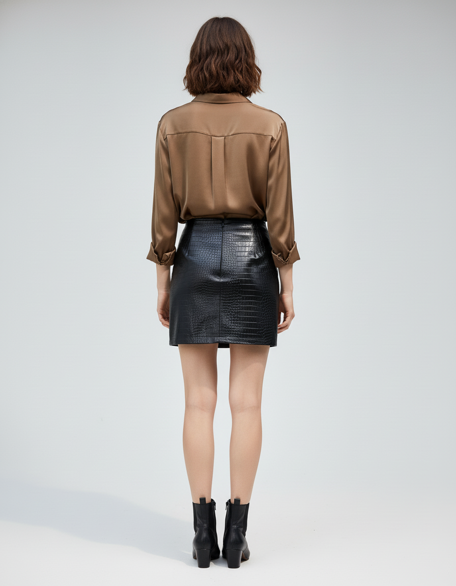 Jupe Crayon Noire Chic Motif Crocodile : L'Essence du Luxe Urbain