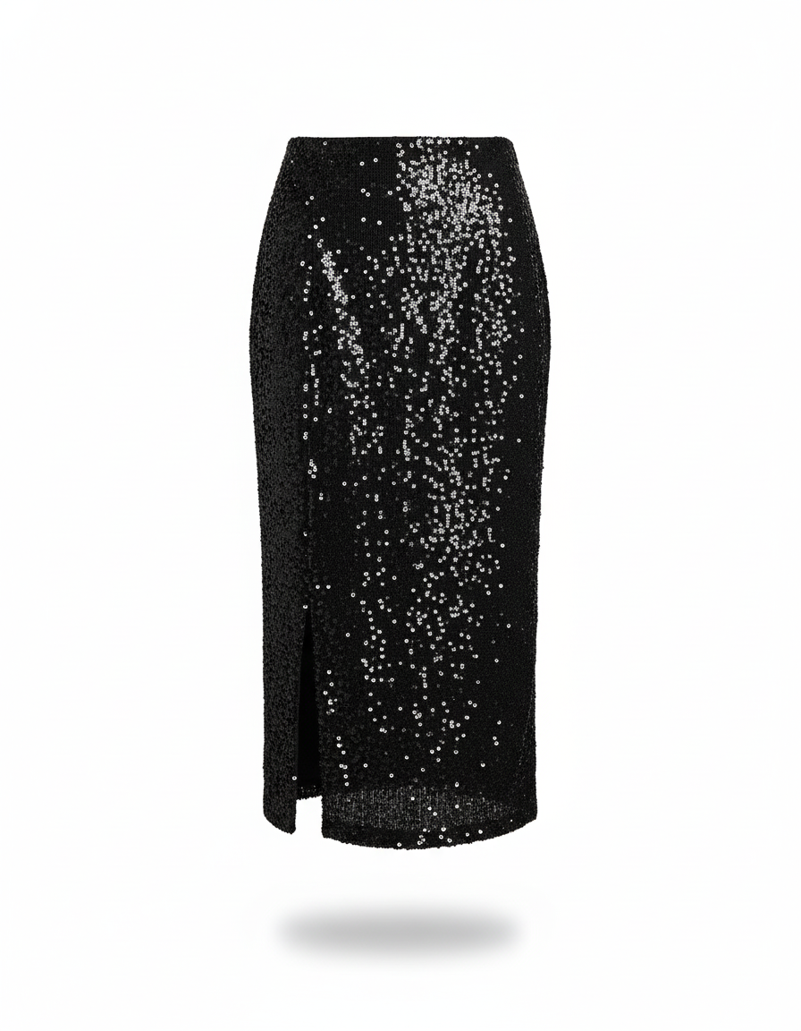 Éclat Sophistiqué : La Jupe Crayon Pailletée Fendue pour une Allure Inoubliable