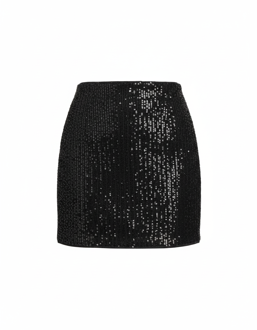 Brillez de mille feux lors de vos soirées avec notre jupe crayon noire à paillettes, l'essence même du chic.