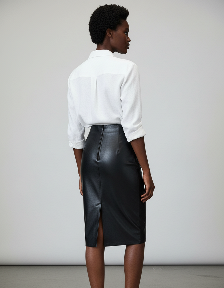 Élégance Redéfinie : La Jupe Crayon Simili Cuir