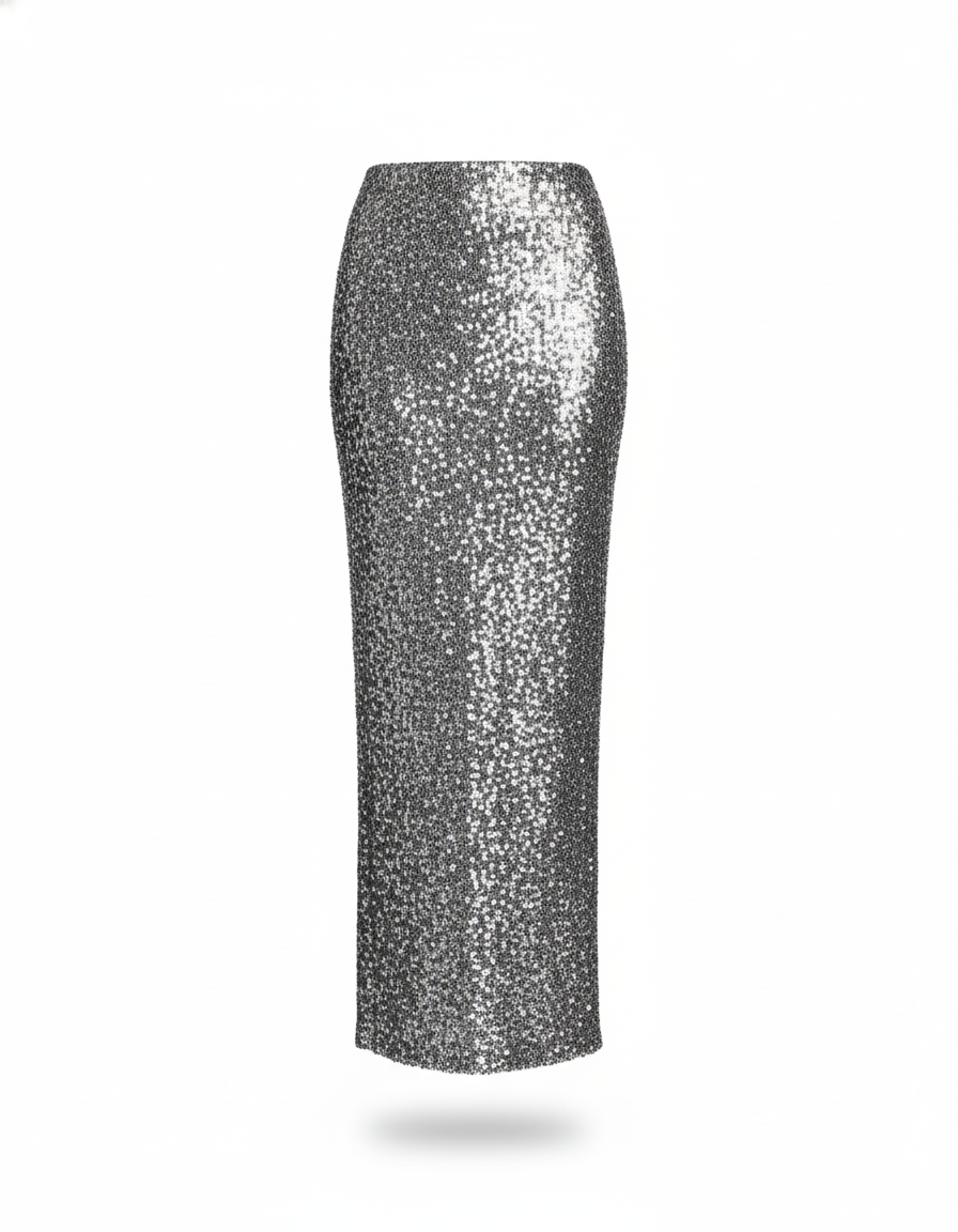 Éblouissez lors de vos soirées avec notre Jupe Crayon Paillettes Argentée Chic, une pièce maîtresse pour un look glamour.