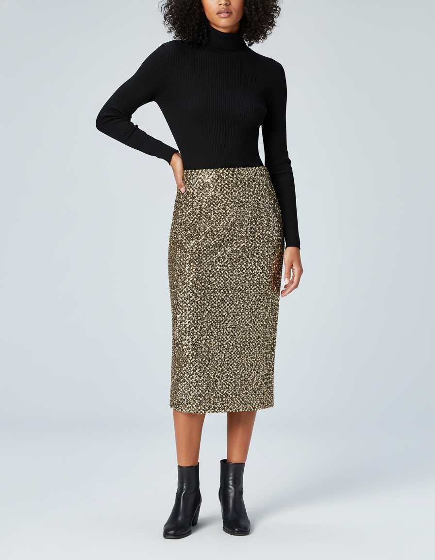 La Jupe Crayon Paillettes Dorées : L'Éclat du Luxe Moderne