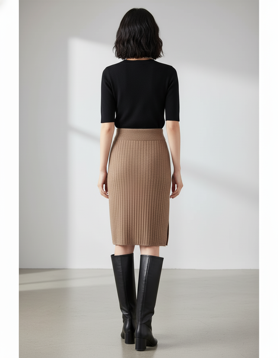 Jupe Crayon Chic en Maille Beige : L'Élégance Parfaite pour la Silhouette Petite