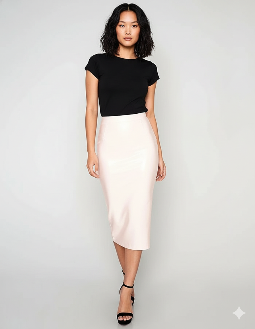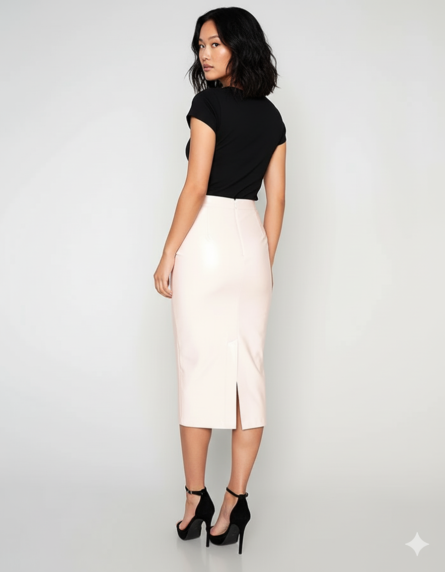 Conçue en cuir souple avec une finition brillante rose poudré, la Jupe Crayon Rose Poudré Brillante Chic redéfinit l'élégance moderne. Sa matière premium épouse délicatement vos formes sans jamais contraindre, assurant une liberté de mouvement totale. Oubliez les idées reçues sur les jupes crayons : ce modèle est pensé pour votre confort, vous permettant de vous déplacer avec aisance et confiance, que ce soit pour une soirée dansante ou une journée exigeante. Son toucher soyeux et sa souplesse exceptionnelle vous garantissent un bien-être inégalé.