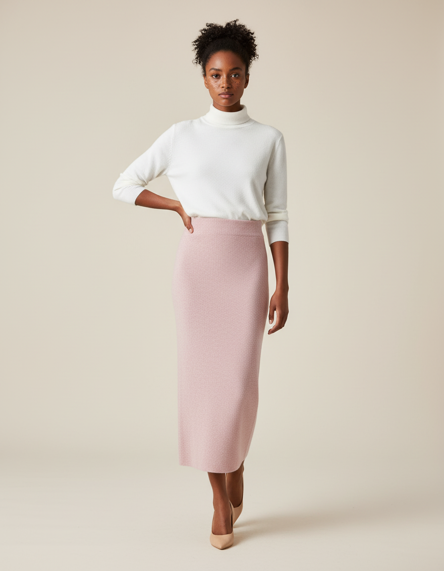 Découvrez l'Élégance Moderne : Jupe Crayon Rose Tricotée