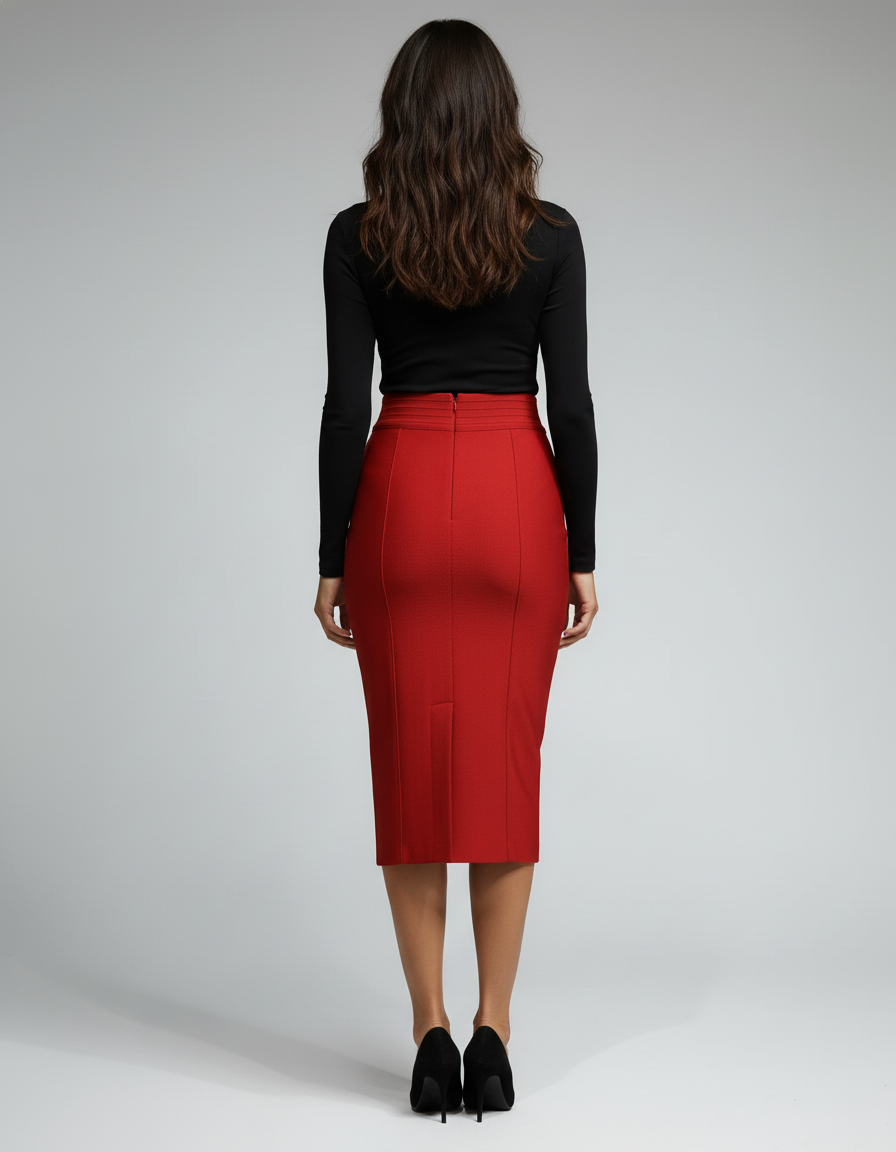 La Jupe Crayon Rouge Boutonnée Chic : Votre Déclaration d'Élégance Moderne