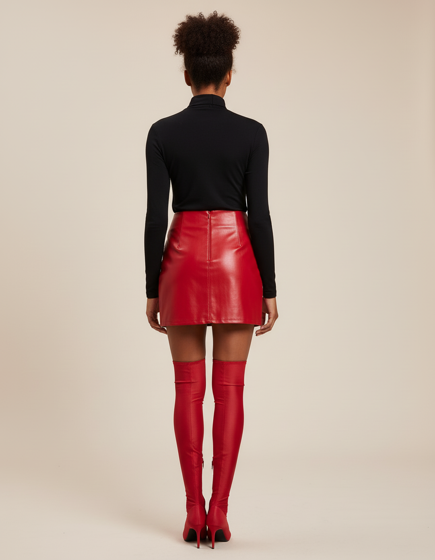 L'Audace Redéfinie : La Jupe Crayon Rouge Brillant, Votre Signature Stylistique